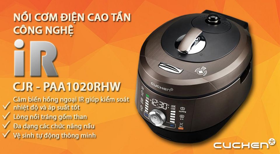 Nồi cơm điện Cuchen công nghệ IR có cơ chế toả nhiệt giống nồi nung, nhiệt độ ở thành và đáy nồi chênh lệch thấp. Bên cạnh đó diện tích toả nhiệt trong nồi gấp 25% so với công nghệ IH cũ.